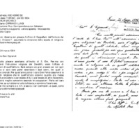 Accetta con piacere l'uffizio di Cappellani dell'Istituto dei Derelitti. D.Cane F. assumerà la direzione della scuola di religione. Augura buone festepasquali.