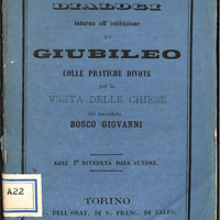 - IT Bosco Giovanni, Dialogi intorno all'istituzione del Giubileo colle pratiche divote per la visita delle chiese ... 2nd ed. Torino: Tip. dell'Oratorio di S. Francesco di Sales, 1865