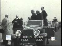 Cardinali, arcivescovi e missionari Salesiani visitano lo stabilimento Fiat di Lingotto accompagnati da Giovanni Agnelli. Terminata la visita i prelati provano le vetture Fiat sulla pista situata sul tetto dello stabilimento torinese. Visita in occasione della beatificazione di Don Bosco, nel 1929. Fiat.