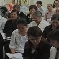 - Vari rappresentanti di diverse congregazioni religiose e i Padri Salesiani rendono omaggio alla reliquia di S. Giovanni Bosco. Language: english.