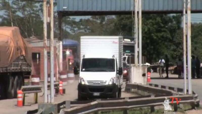 - Il camioncino che trasporta l'Urna supera il confine fra i due Stati, fra i fedeli in preghiera. Ad accompagnare in Paraguay le reliquie, l'Ispettore argentino di Rosario, Padre Joaquín López, che passa spiritualmente il testimone ai salesiani paraguagi
