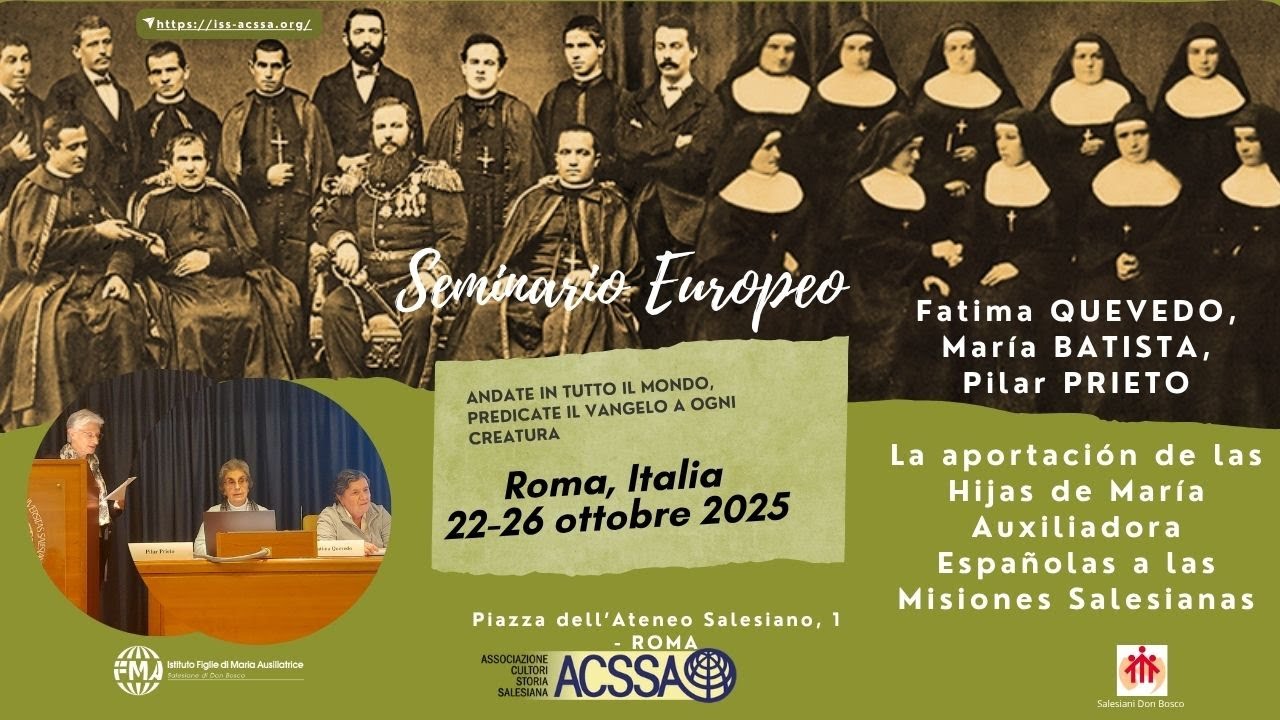 - Roma, 22-26 ottobre 2025 Seminario Europeo ACSSA Missioni salesiane nel mondo. Apporto dei Salesiani e delle Figlie di Maria Ausiliatrice La aportacion de las Hijas de Maria Auxiliadora Espanolas a las Misiones Salesianas, Fatima Quevedo, Maria Batista, Pilar Prieto
