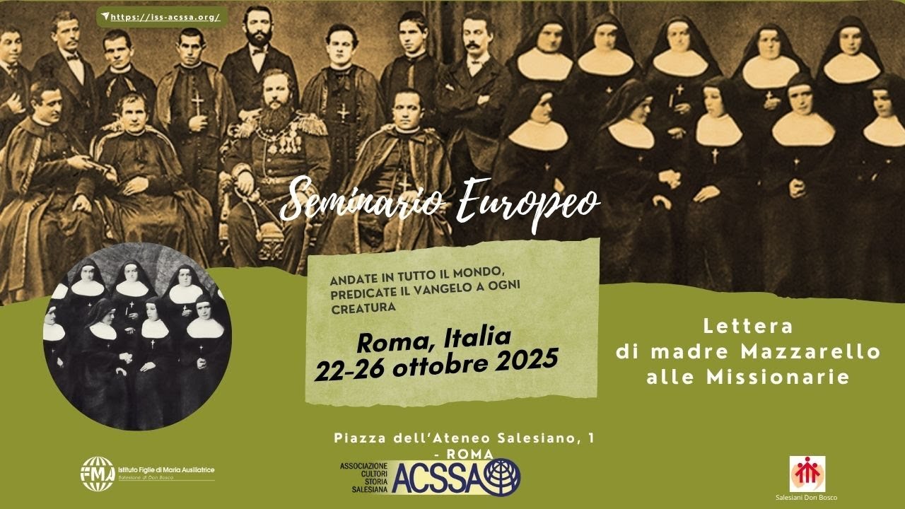 - Roma, 22-26 ottobre 2025 Seminario Europeo ACSSA Missioni salesiane nel mondo. Apporto dei Salesiani e delle Figlie di Maria Ausiliatrice Lettera alle Missionarie, madre Maria Domenica Mazzarello