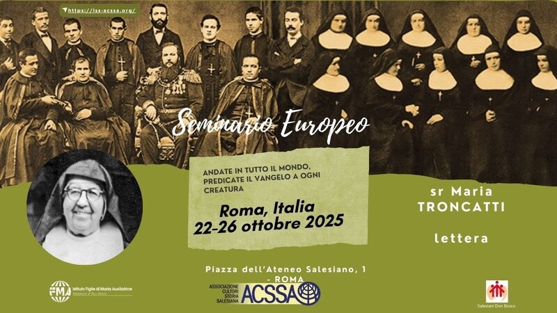 - Roma, 22-26 ottobre 2025 Seminario Europeo ACSSA Missioni salesiane nel mondo. Apporto dei Salesiani e delle Figlie di Maria Ausiliatrice Lettera, sr Maria Troncatti