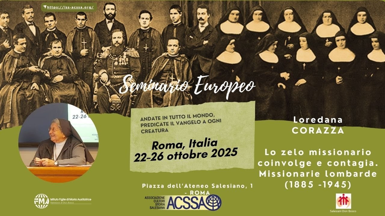 - Roma, 22-26 ottobre 2025 Seminario Europeo ACSSA Missioni salesiane nel mondo. Apporto dei Salesiani e delle Figlie di Maria Ausiliatrice Lo zelo missionario coinvolge e contagia. Missionarie lombarde (1885 -1945), Loredana Corazza Moderatrice: Maria Concetta Ventura, Vice-Presidente ACSSA Italia