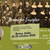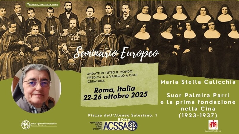 - Roma, 22-26 ottobre 2025 Seminario Europeo ACSSA Missioni salesiane nel mondo. Apporto dei Salesiani e delle Figlie di Maria Ausiliatrice Suor Palmira Parri e la prima fondazione nella Cina agitata dalle lotte ideologiche e dalle rivalità politiche (1923-1937), Maria Stella Calicchia (Legge la relazione sr Grazia Loparco) Moderatore: Bogdan Kolar, Consigliere ACSSA Europa