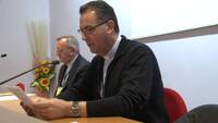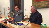 Don Cereda, Vicario del Rettor Maggiore, pronuncia il discorso di ringraziamento all'AGeSC per l'assegnazione del Premio Macchi alla Congregazione Salesiana