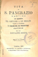 Bosco Giovanni, Vita di S. Pancrazio martire: con appendice sul Santuario a lui dedicato vicino a Pianezza e coroncina di preghiere ad onore di detto santo ... 4rd ed. Torino: Tip. dell'Oratorio di S. Francesco di Sales, 1873